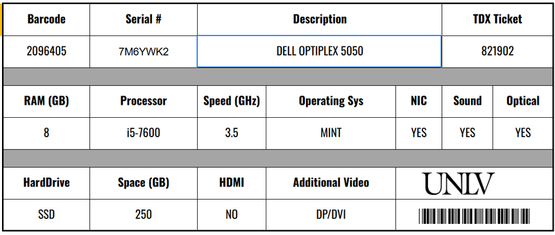 ITEMS ARE AVAILABLE FOR IN-STORE PICKUP ONLY AT UNLV SURPLUS CENTER, UNLESS OTHERWISE SPECIFICALLY DESIGNATED AS "SHIPPING AVAILABLE."