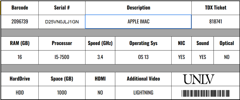 ITEMS ARE AVAILABLE FOR IN-STORE PICKUP ONLY AT UNLV SURPLUS CENTER, UNLESS OTHERWISE SPECIFICALLY DESIGNATED AS "SHIPPING AVAILABLE."