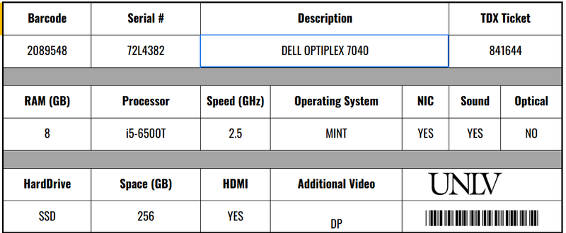 ITEMS ARE AVAILABLE FOR IN-STORE PICKUP ONLY AT UNLV SURPLUS CENTER, UNLESS OTHERWISE SPECIFICALLY DESIGNATED AS "SHIPPING AVAILABLE."