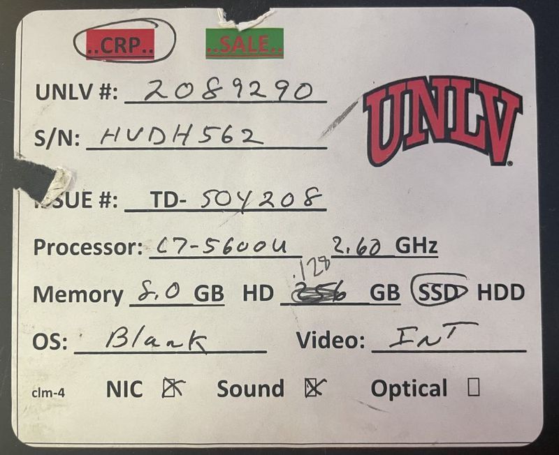 ITEMS ARE AVAILABLE FOR IN-STORE PICKUP ONLY AT UNLV SURPLUS CENTER, UNLESS OTHERWISE SPECIFICALLY DESIGNATED AS "SHIPPING AVAILABLE."